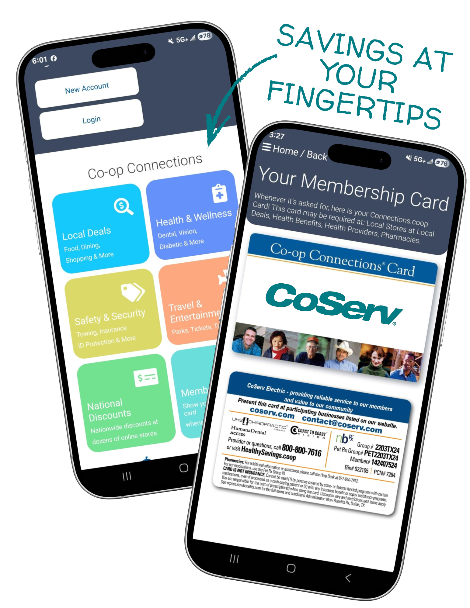 The new Co-op Connections Card from CoServ offers discounts on everything from movies and sporting events to cruises and airfare. Just download the app and start taking advantage of savings!