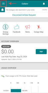 - Open the app's menu from the upper left corner