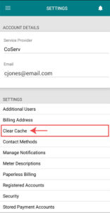 How to clear cache in the SmartHub app