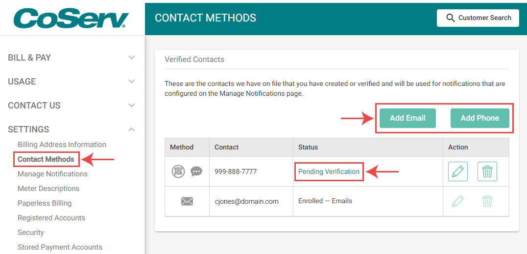 - Click on 'Pending 'Verification' next to the new email address or phone number and enter the verification code
