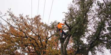 When a bucket truck can’t reach the pole, CoServ calls in special contractor crews who trim trees the old-fashioned way – by climbing.