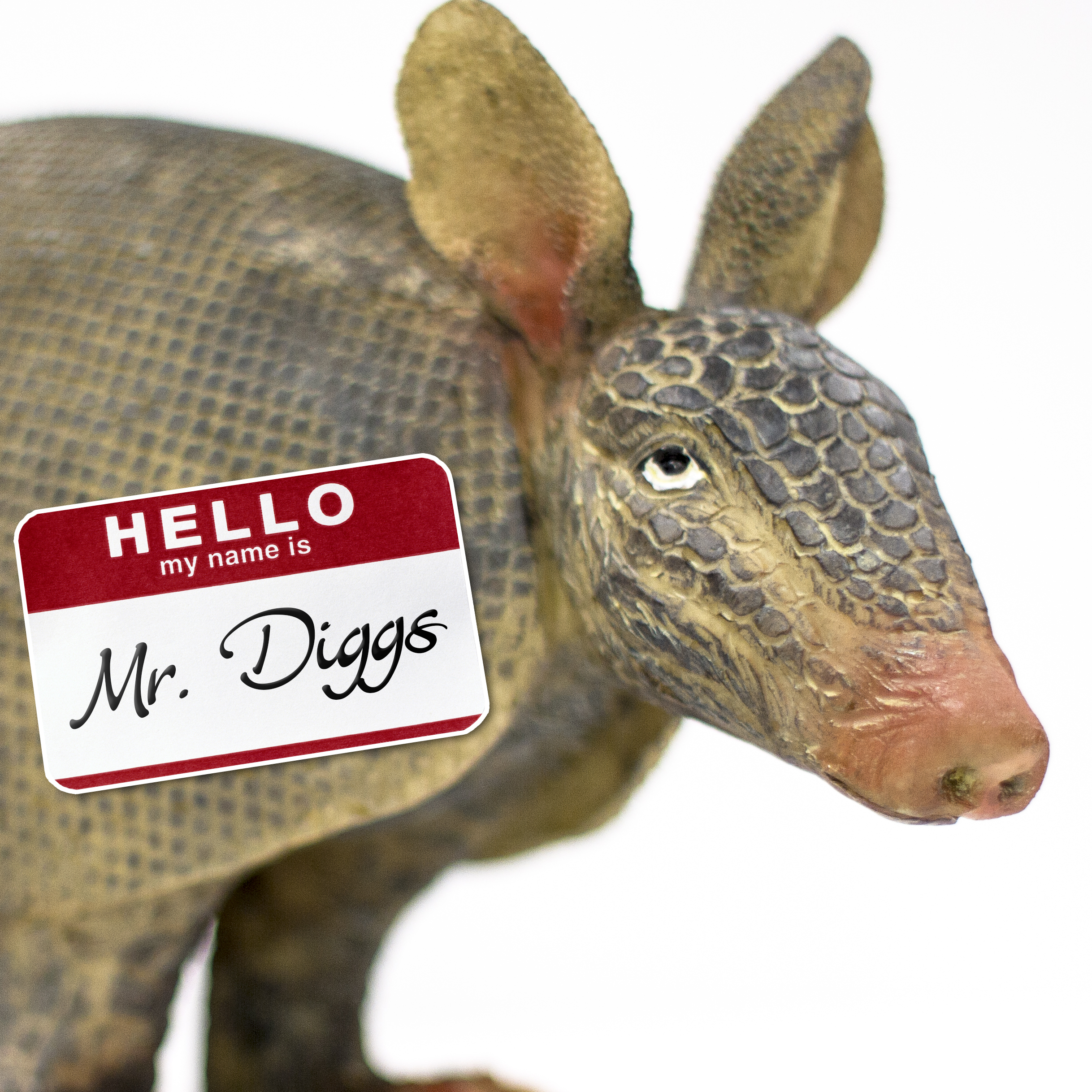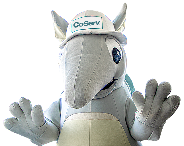 The name "Mr. Diggs" is actually a bit of an inside joke at CoServ, dating back to an earlier incident where a CoServ gas technician was called to check on the gas lines around a Customer's home after a wild animal had been digging in the area. When the technician arrived to find the feisty, young armadillo, the Mr. Diggs character was born. The technician lectured the armadillo about the dangers of digging without calling 811 and Mr. Diggs' entire life trajectory changed. Later that year, when CoServ Gas was looking to hire a mascot, Mr. Diggs seemed like the logical choice.
