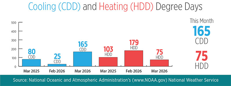 However, there were far fewer cold days this year, so if Members have electric heat, they won’t see as much usage from that, based on the Heating Degree Days. Customers with gas heat will notice less gas usage compared to last March.