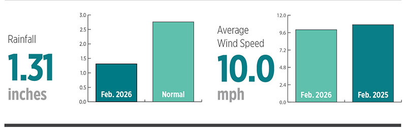 February was also dry, with nearly all the precipitation coming on Valentine’s Day.